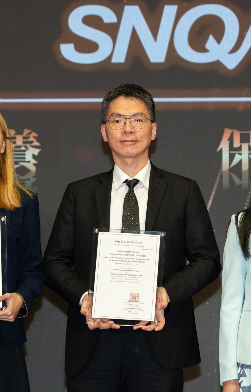 Lễ trao tặng Nhãn hiệu chất lượng quốc gia SNQ (SNQ), được mệnh danh là "Giải Oscar trong ngành y sinh học", được tổ chức vào ngày 14/02. Formosa Biomedical đã gia nhập vào thị trường sản phẩm tóc từ 10 năm nay. Năm nay, dầu gội bảo vệ màu chăm sóc tóc nhuộm "Dr's Formula Color Fixing Shampoo" đã giành được Chứng nhận Nhãn hiệu Chất lượng Quốc gia SNQ với công nghệ mới bảo vệ màu độc đáo. Tổng Giám đốc Liu Huiqi đã thay mặt cho công ty nhận chứng nhận SNQ lần thứ 10 này.